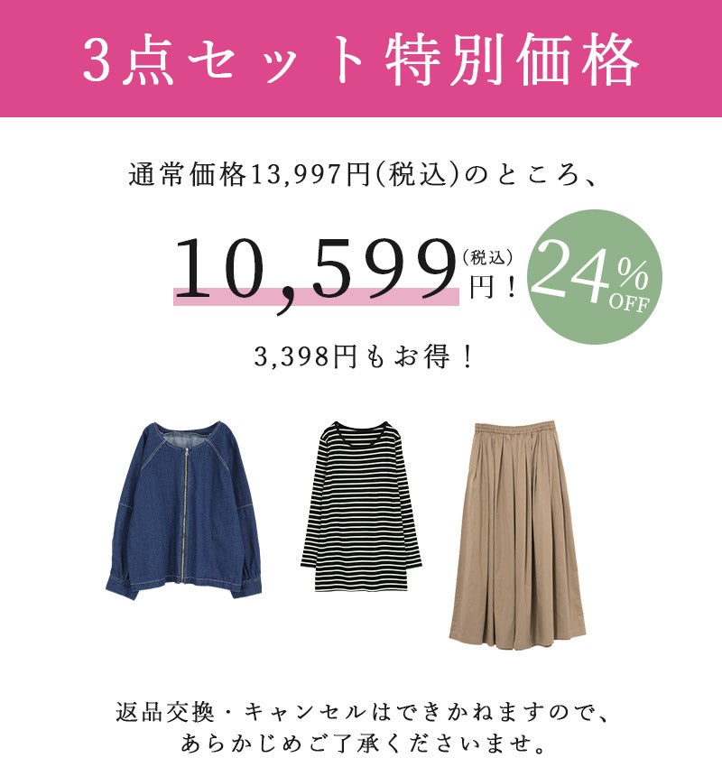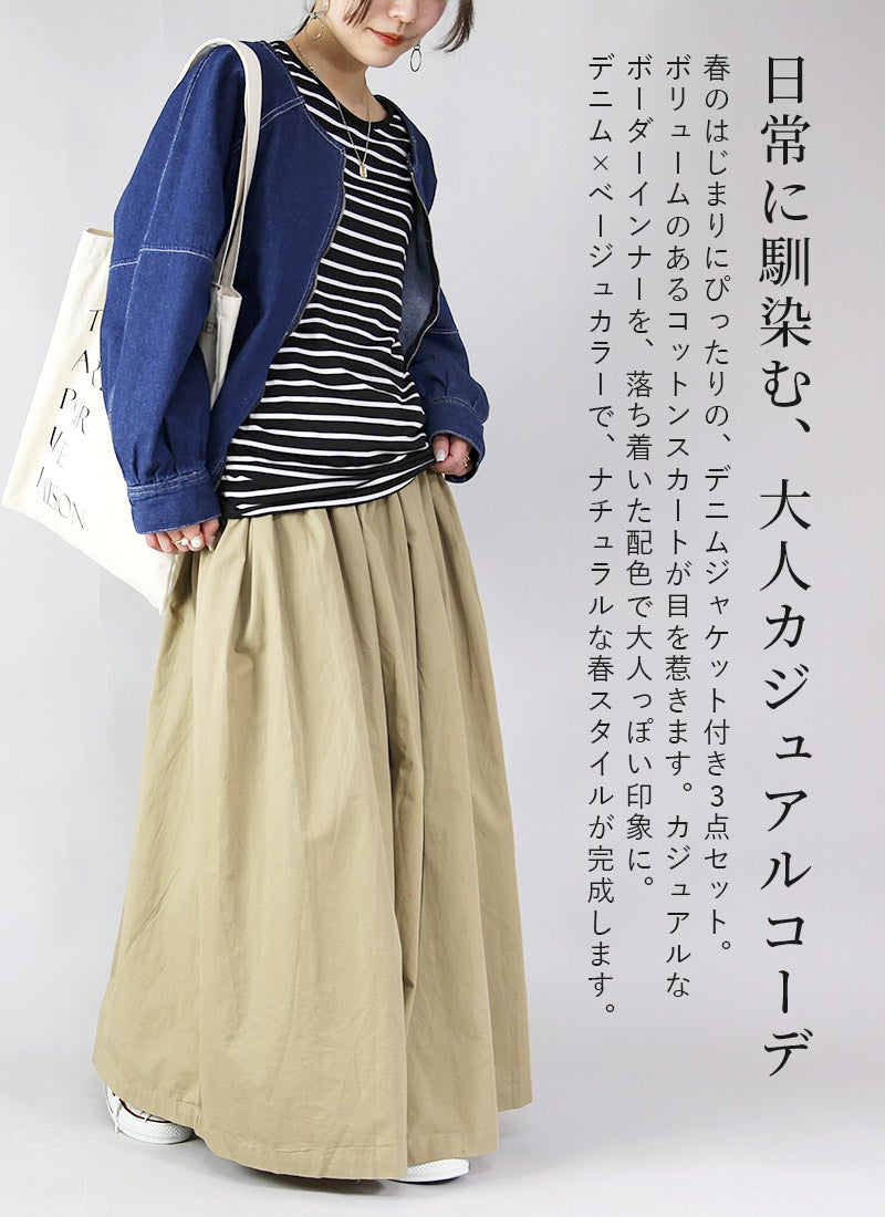 他の画像を見る 春のはじまりにぴったりのデニムジャケット付き3点セット!ボリュームのあるコットンスカートが目を惹きます!ボーダーxデニム×ベージュでナチュラルな春スタイルが完成♪ 春のナチュラルボリュームスカートコーデ M 【メール便対応不可】 コーデセット 販売価格 ¥ 10,599 税込 カートに入れる お気に入りに登録する