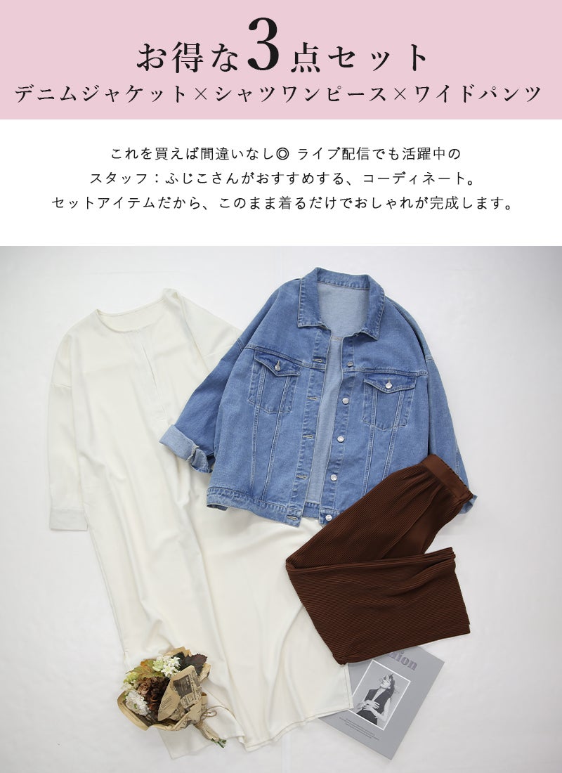 他の画像を見る 届いてすぐに楽しめる!毎日着たくなる春のデイリーコーデが完成するジャケット・ワンピース・ワイドパンツの3点セット。 春のデイリーシャツワンピコーデ M 【メール便対応不可】 コーデセット 販売価格 ¥ 11,199 税込 カートに入れる お気に入りに登録する