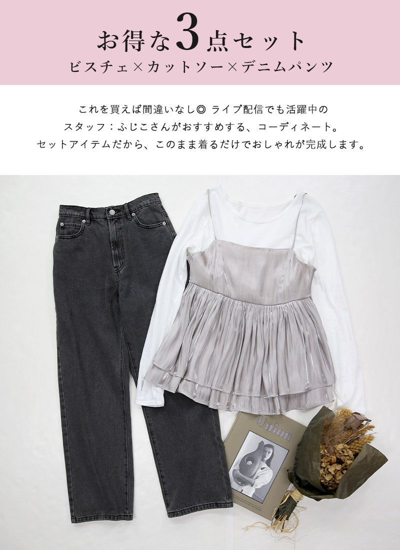 他の画像を見る 届いてすぐに楽しめる!軽やかな春の重ね着スタイルが完成するビスチェ・カットソー・デニムパンツの3点セット。 春の軽やかレイヤードコーデ M 【メール便対応不可】 コーデセット 販売価格 ¥ 7,199 税込 カートに入れる お気に入りに登録する