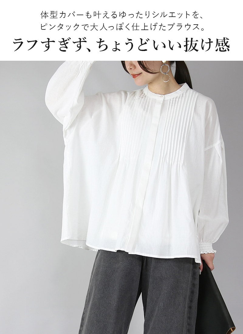 他の画像を見る 柔らかいコットン生地がナチュラルな印象に。ワイドなシルエットがラフな着心地を叶える大人のブラウス。 コットン長袖ピンタックブラウス M-L 【メール便対応可】 新商品 販売価格 ¥ 4,999 税込 カートに入れる お気に入りに登録する