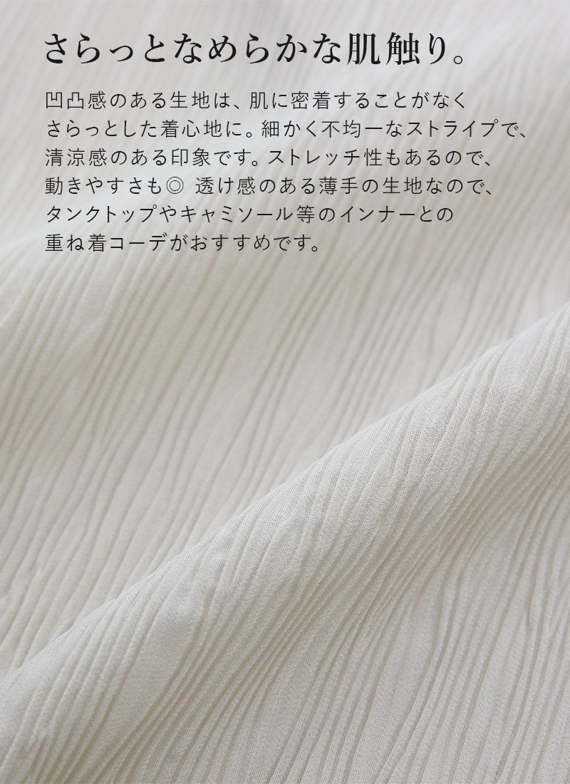他の画像を見る ナチュラルなシワ感が雰囲気漂う。襟と袖口のさりげないレースが大人可愛いブラウス。 リップルシャーリングブラウス M-L 【メール便対応可】 新商品 販売価格 ¥ 4,999 税込 カートに入れる お気に入りに登録する