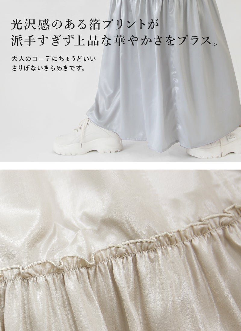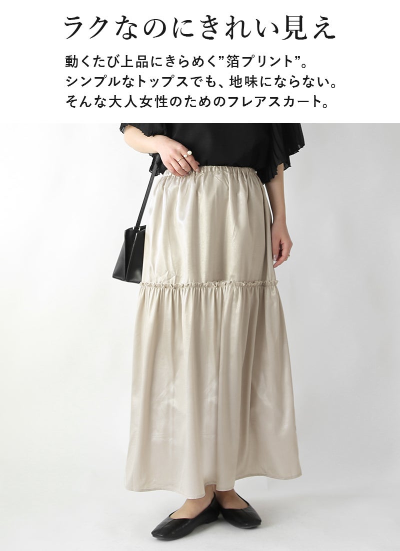 他の画像を見る きらめく箔プリントが目を惹く一枚。揺れるフレアで華やかな大人スタイルに。 箔プリントフレアスカート F 【メール便対応可】 新商品 販売価格 ¥ 1,499 税込 カートに入れる お気に入りに登録する