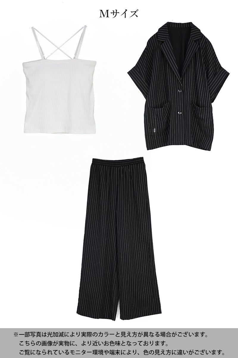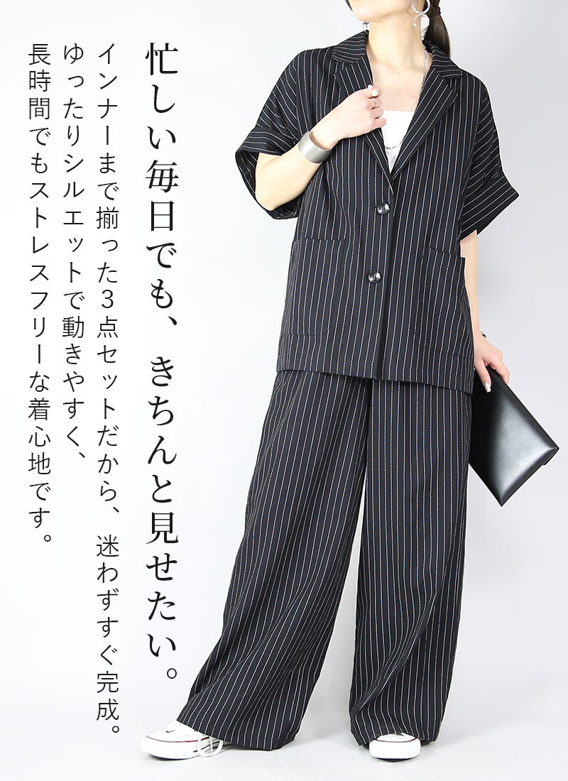 他の画像を見る これだけでコーデが完成、迷わない3点セット。ストライプで縦ラインを強調しスタイルアップも叶える。 3点コーデセット M 【メール便対応不可】 コーデセット 販売価格 ¥ 9,999 税込 カートに入れる お気に入りに登録する