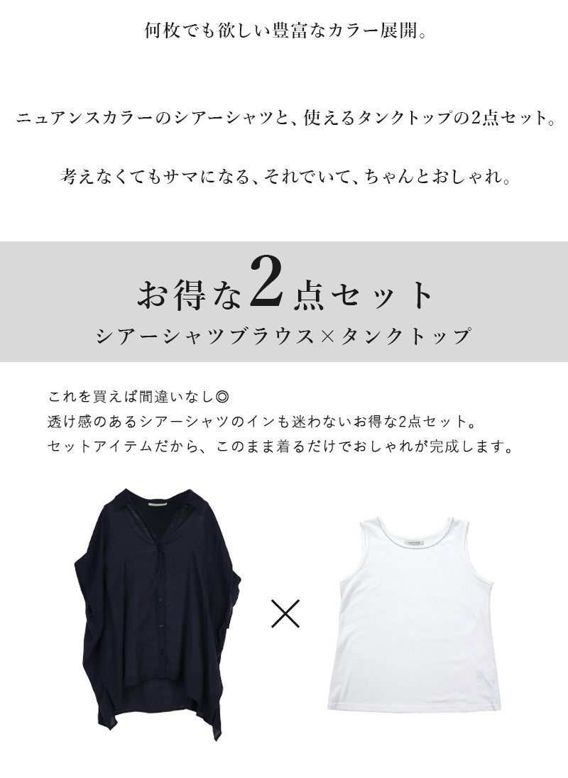 他の画像を見る ニュアンスカラーとシアー素材でシーズンムードが高まる。シャツとタンクトップのセットが嬉しい。 ドルマンブラウス/タンクトップ セット M L 【メール便対応可】 新商品 販売価格 ¥ 3,999 税込 カートに入れる お気に入りに登録する