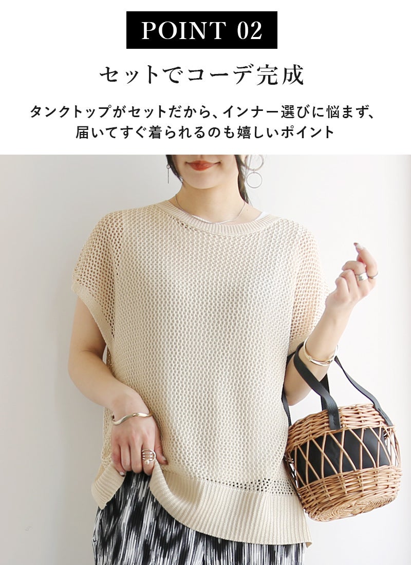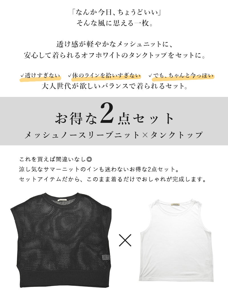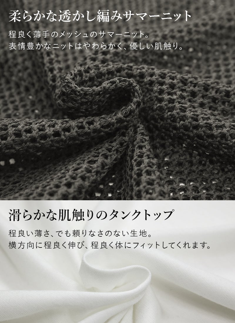 他の画像を見る 透け感メッシュ×安心タンクの黄金バランス。 着るだけでこなれる、お得な2点セット。 メッシュノースリーブニット/タンクトップ セット M L 【メール便対応可】 新商品 販売価格 ¥ 3,999 税込 カートに入れる お気に入りに登録する