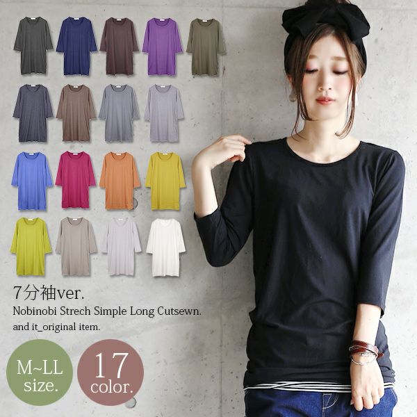 のびのびストレッチ7分袖シンプルロングカットソー M L LL 【メール便対応可】
