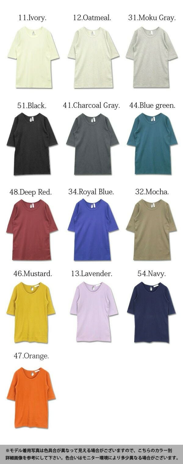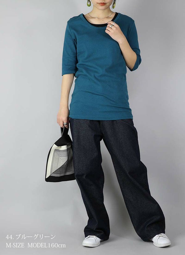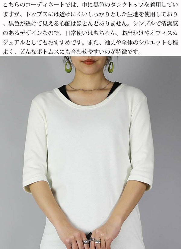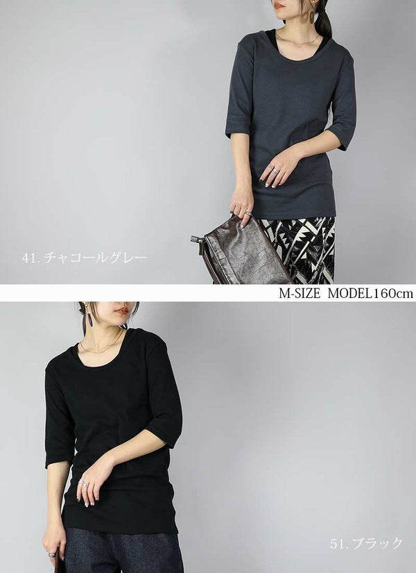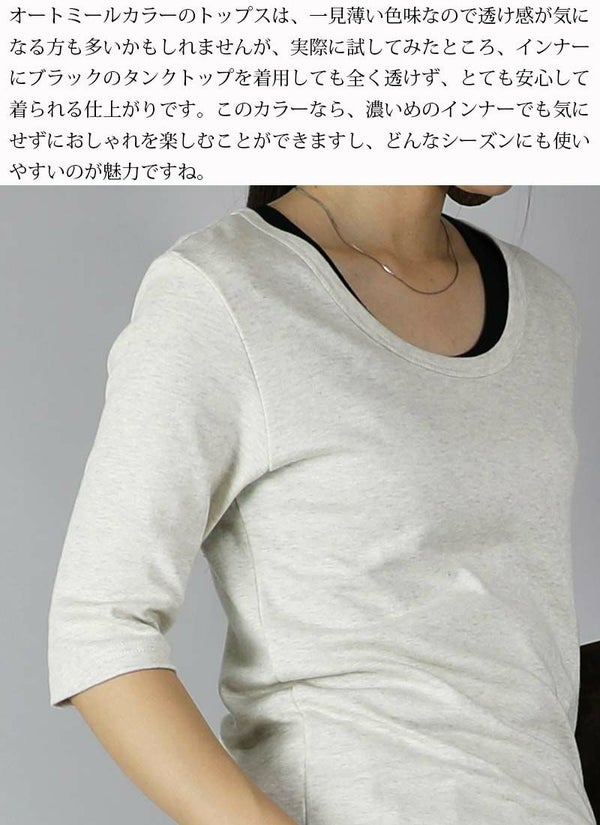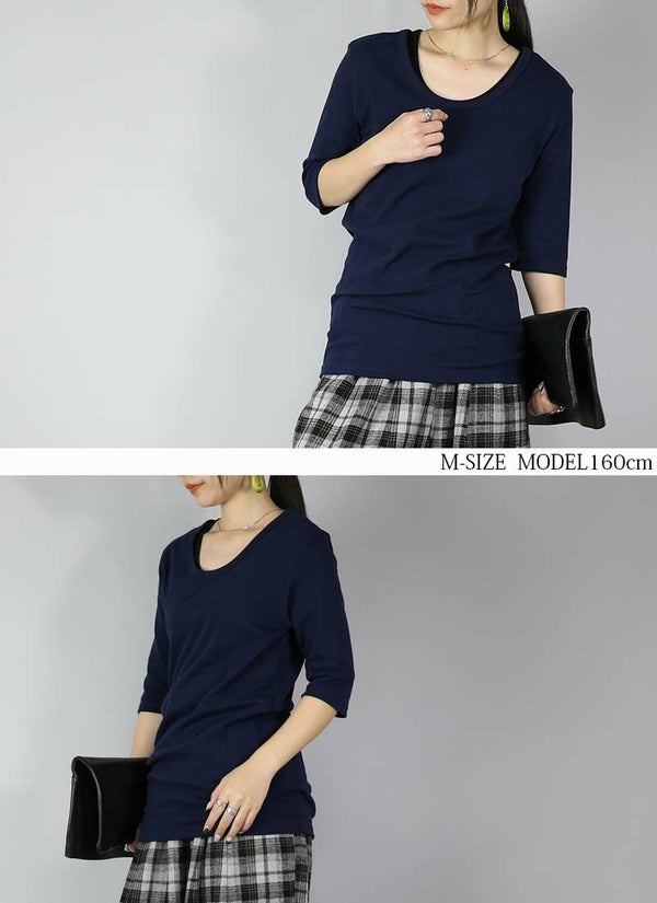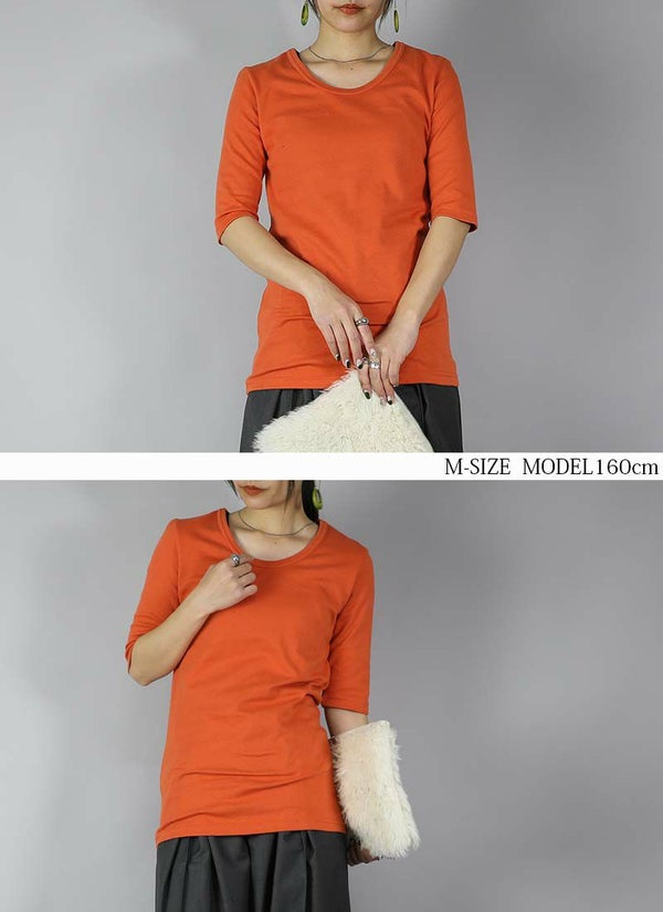 - 透けない5分袖スムースコットンロングカットソー 【メール便対応可】