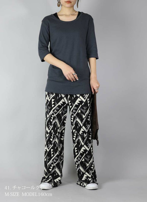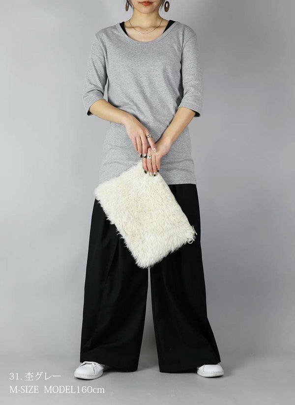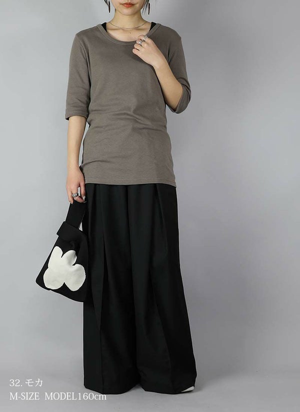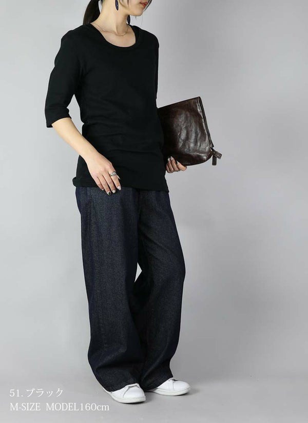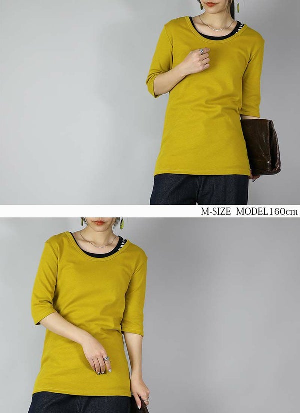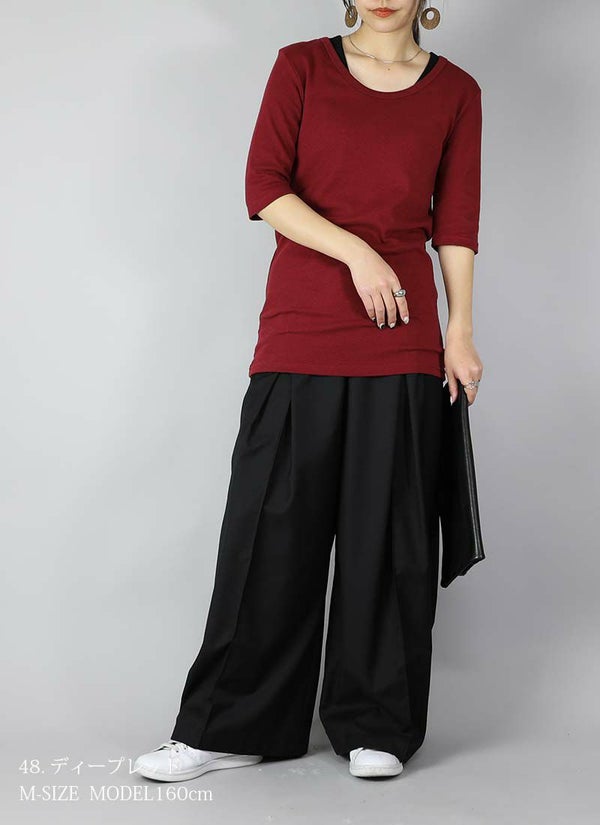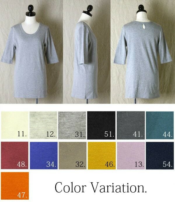 - 透けない5分袖スムースコットンロングカットソー 【メール便対応可】