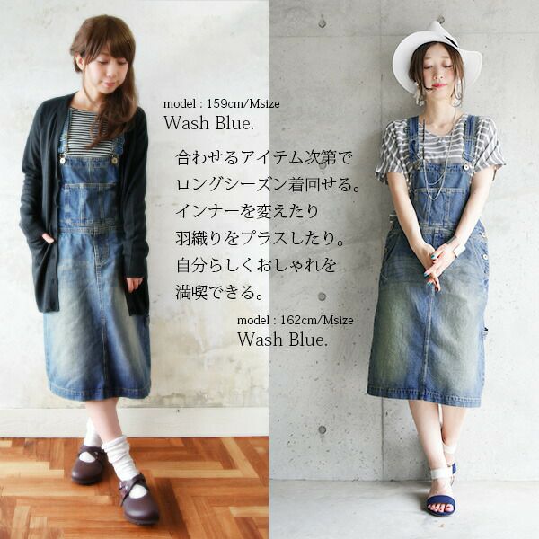 オーバーオール スカート レディース サロペット ミドル丈 デニム