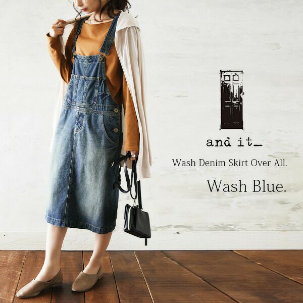 ウォッシュデニムスカートオーバーオール 【メール便対応不可】
