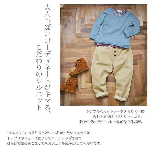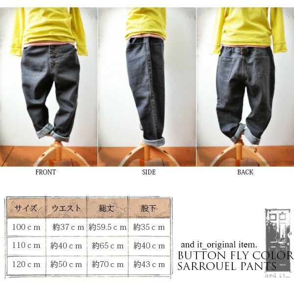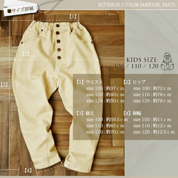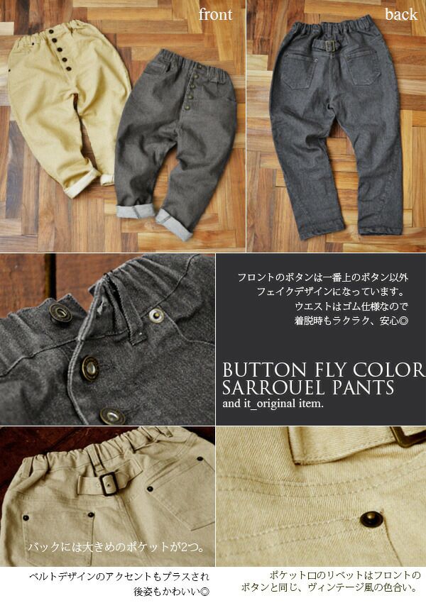 他の画像を見る ラフでお洒落でとにかく可愛いいつだって当店NO.1の定番ボトムがKIDS SIZEで登場! ボタンいっぱいカラーサルエルパンツ 【メール便対応不可】 販売価格 ¥ 4,699 税込 カートに入れる お気に入りに登録する
