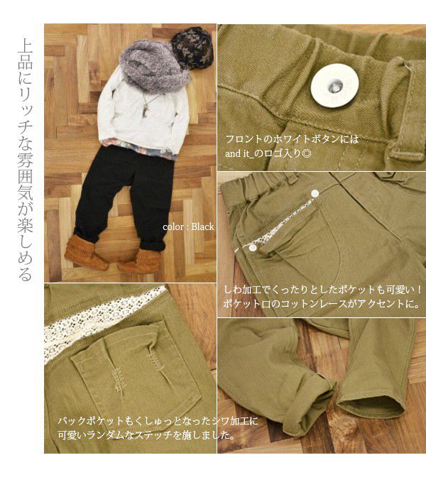 他の画像を見る 18,527本販売突破☆コットンレース付カラーサルエルパンツがKIDSサイズで登場◎ キッズコットンレース付カラーサルエルパンツ 【メール便対応不可】 販売価格 ¥ 4,400 税込 カートに入れる お気に入りに登録する