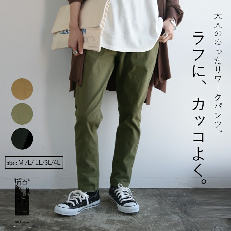 他の画像を見る カジュアルの定番ツイルパンツを着こなす◎ヒップ周りはゆったり、裾はくしゅっと。ストレッチ生地で穿き心地楽ちん! ストレッチツイルルーズテーパードパンツ M L LL 3L 4L 【メール便対応可】 販売価格 ¥ 6,499 税込 カートに入れる お気に入りに登録する