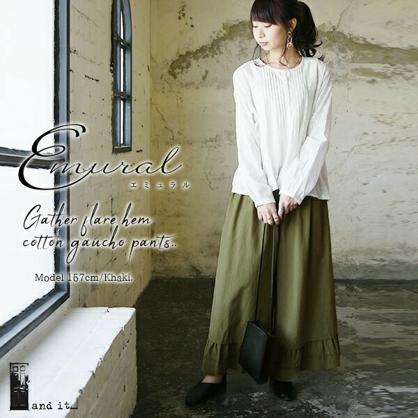 他の画像を見る 裾のフレアが大人可愛いナチュラルコーデに♪ワイドシルエットでゆったりガウチョパンツ◎ エミュラル emural ギャザーフレアヘムコットンガウチョパンツ 【メール便対応不可】 販売価格 ¥ 4,099 税込 カートに入れる お気に入りに登録する