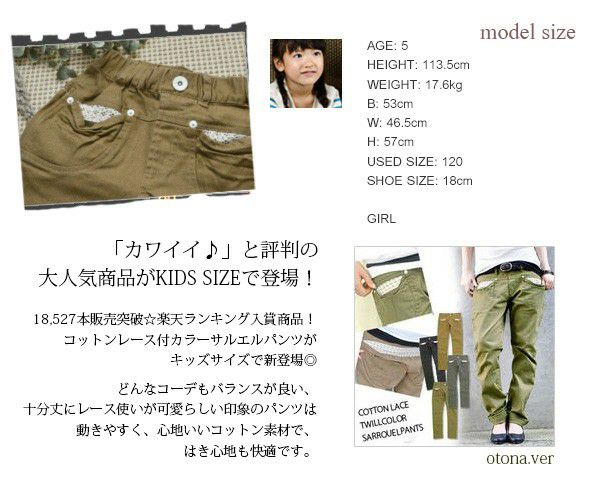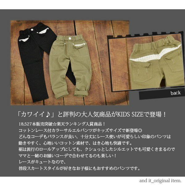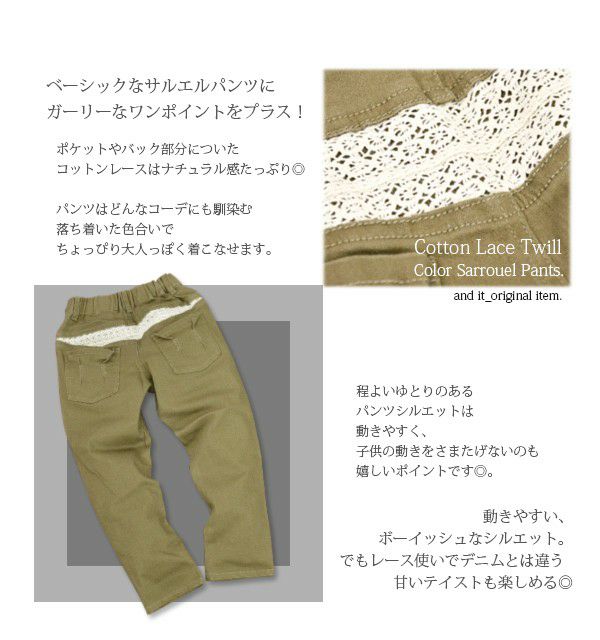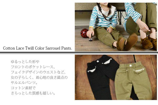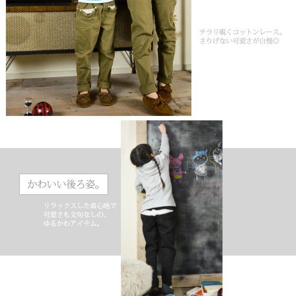 キッズコットンレース付カラーサルエルパンツ 【メール便対応不可】