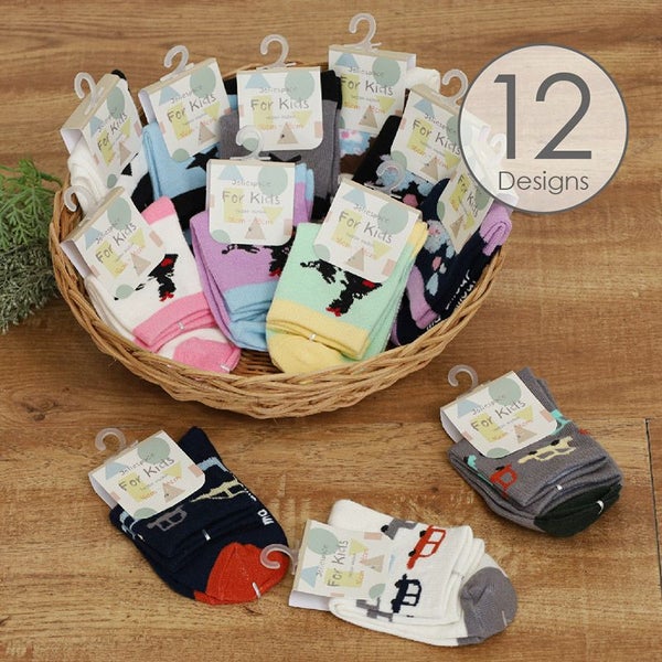足首まで包み込むキッズ用のクルー丈ソックス!安全な滑り止め付き◎