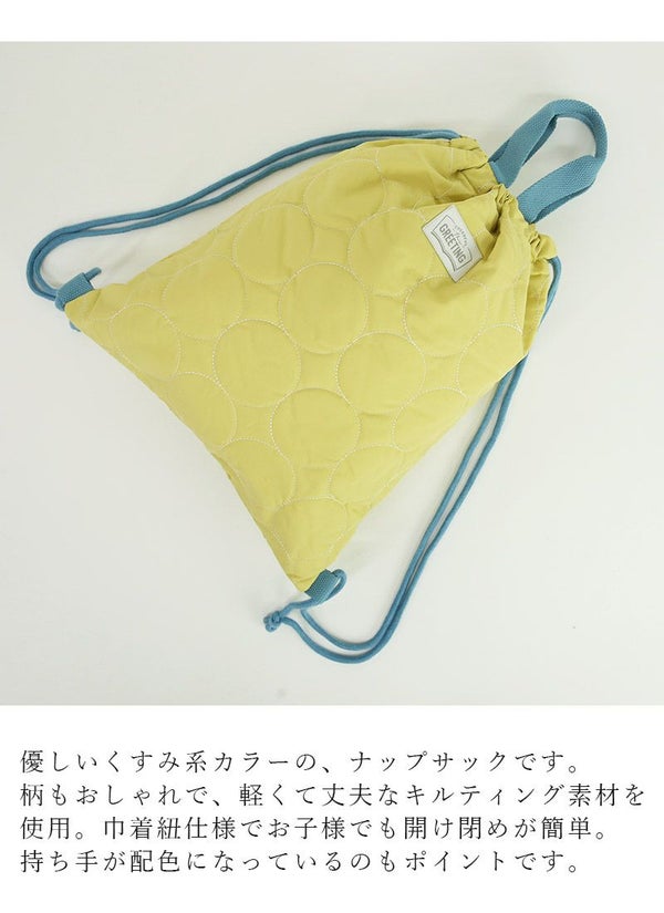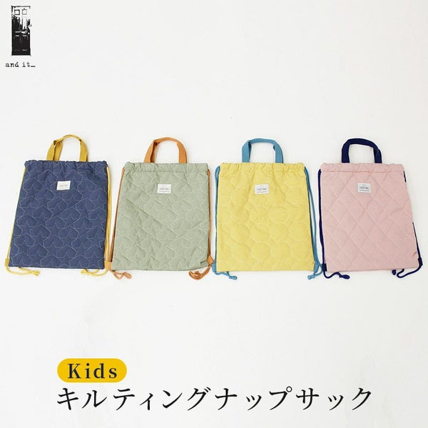 バッグ かばん 鞄 キッズ 子ども こども 子供 ナップサック リュックサック ナップ リュック キルティング ネームタグ ネームラベル 学校 保育園 幼稚園 入園 入学 ネイビー ミントグリーン イエロー スモークピンク 新作 NEW ニュー カジュアル かじゅある ナチュラル なちゅらる 女性 綺麗 綺麗目 綺麗め きれいめ キレイメ キレイめ きれい キレイ 可愛い かわいい カワイイ カッコいい かっこいい 格好良い カッコイイ お洒落 おしゃれ オシャレ トレンド 旬 とれんど 流行 こなれ感 こなれ 高見え 上質 上品 シンプル ニュアンス ラクチン らくちん 楽ちん 楽 動きやすい ゆったり ゆる ゆったりサイズ ゆるカジ ゆるい ゆるファッション ベーシック プチプラ ファッション レディースファッション レディファ カジュアルコーデ きれいめコーデ きれいめカジュアルコーデ おうち時間 お家時間 韓国ファッション 韓国コーデ 韓国風 韓国 誕生日 バースデー プレゼント ギフト 贈り物 クリスマス 春 夏 秋 冬 春夏 秋冬 andit_ and it_ andit ANDIT_ ANDIT あんどいっと アンドイット