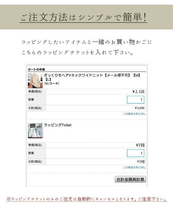 ■ラッピングチケットのみのご注文の場合、あとからの同梱指定は基本的にお受付を致しかねます。