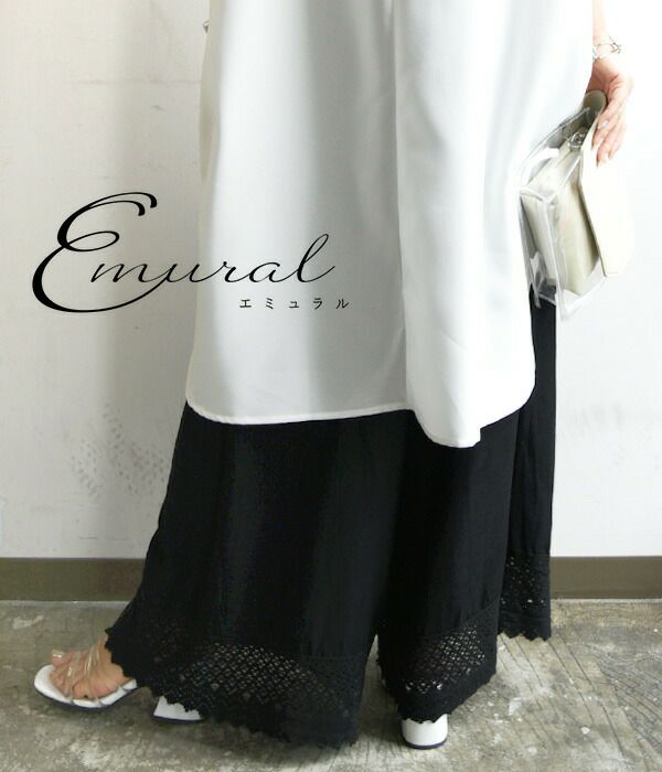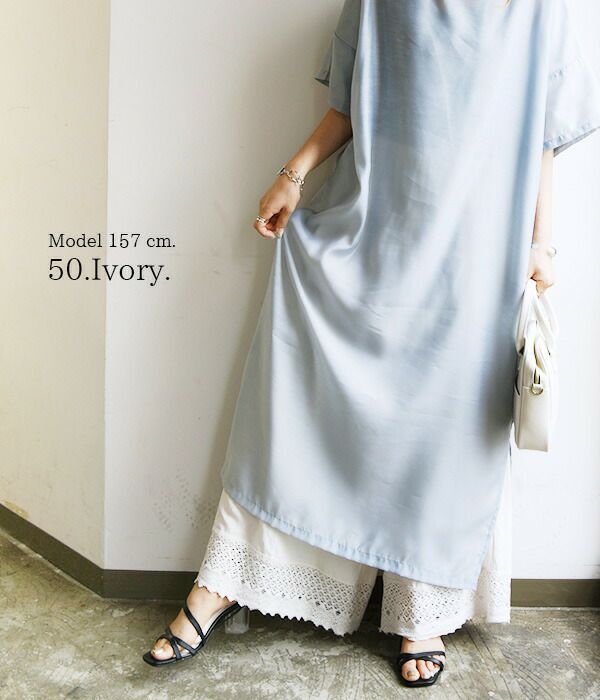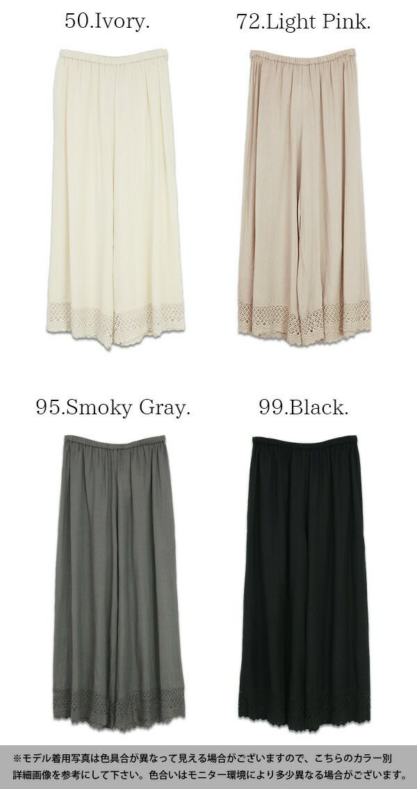 裾レースコットンリネンペチパンツ M-L 【メール便対応可】