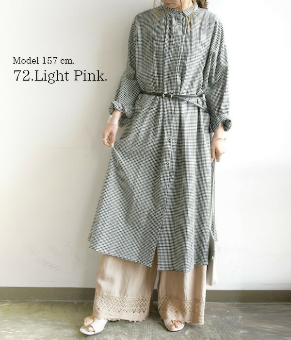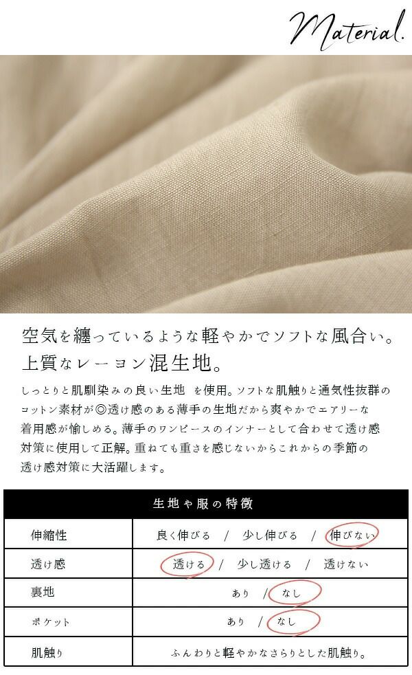 【50アイボリー、72ライトピンク、95スモーキーグレー】レーヨン55%、綿30%、麻15%、(レース 綿100%)