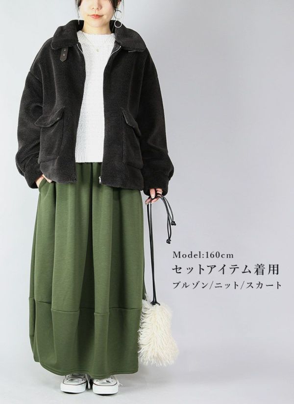 モコッと軽いボアアウターに、柔らかニットとカーキの裏シャギースカートが絶妙バランス!暖かさもおしゃれも叶える3点セット♪