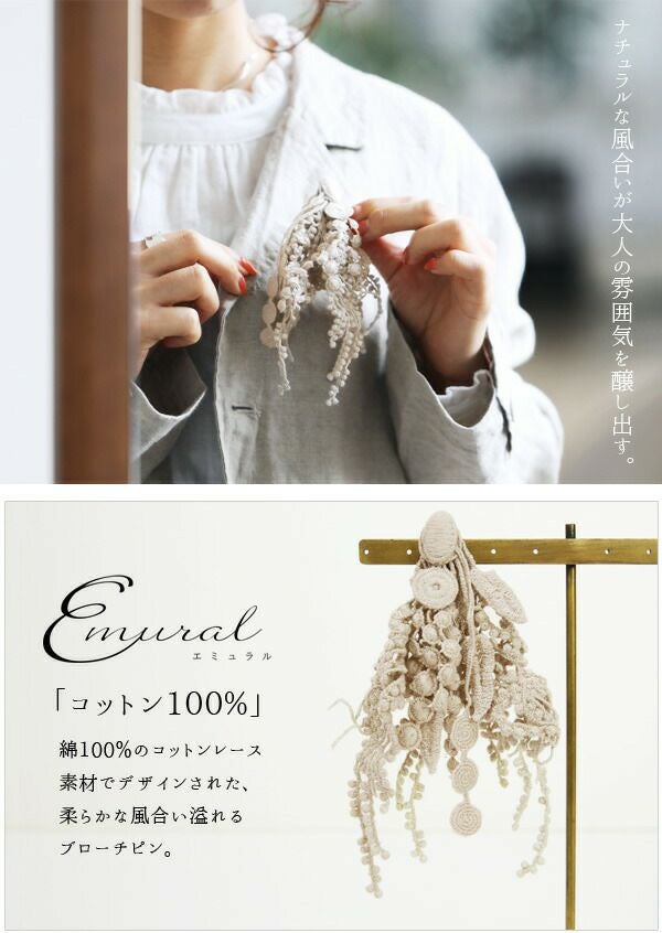 エミュラル emural コットンリーフモチーフブローチ 【メール便対応可】