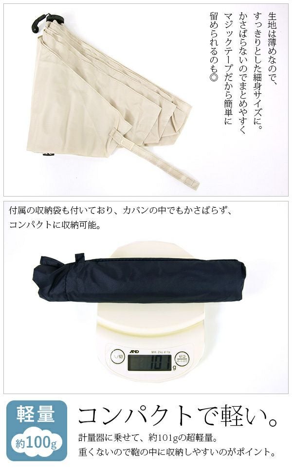 持ち運びに便利な軽量折り畳み傘!約100gと細身でコンパクトなサイズ感がデイリーユースにぴったり♪