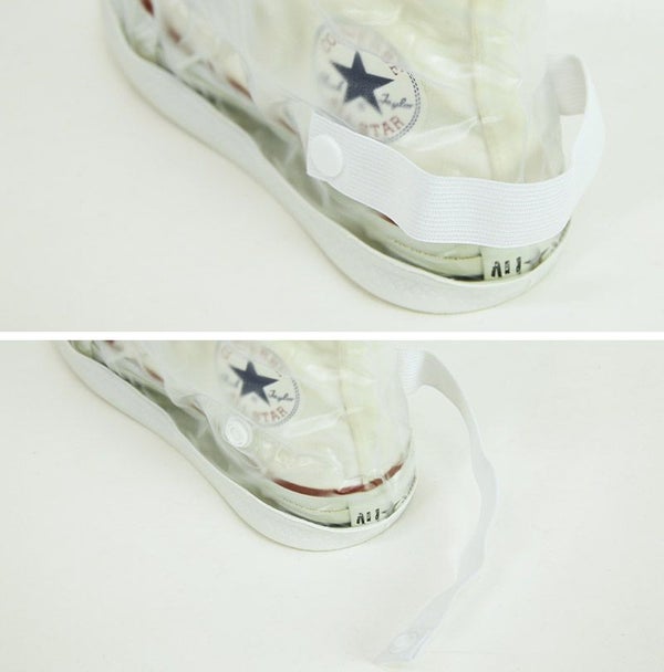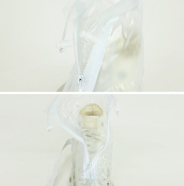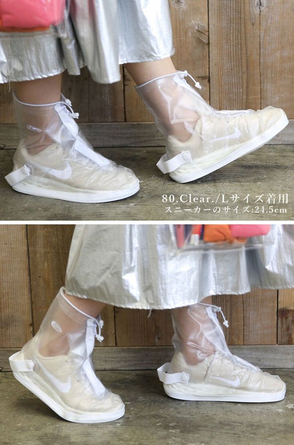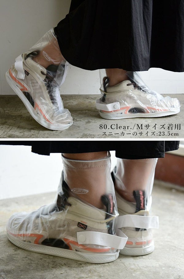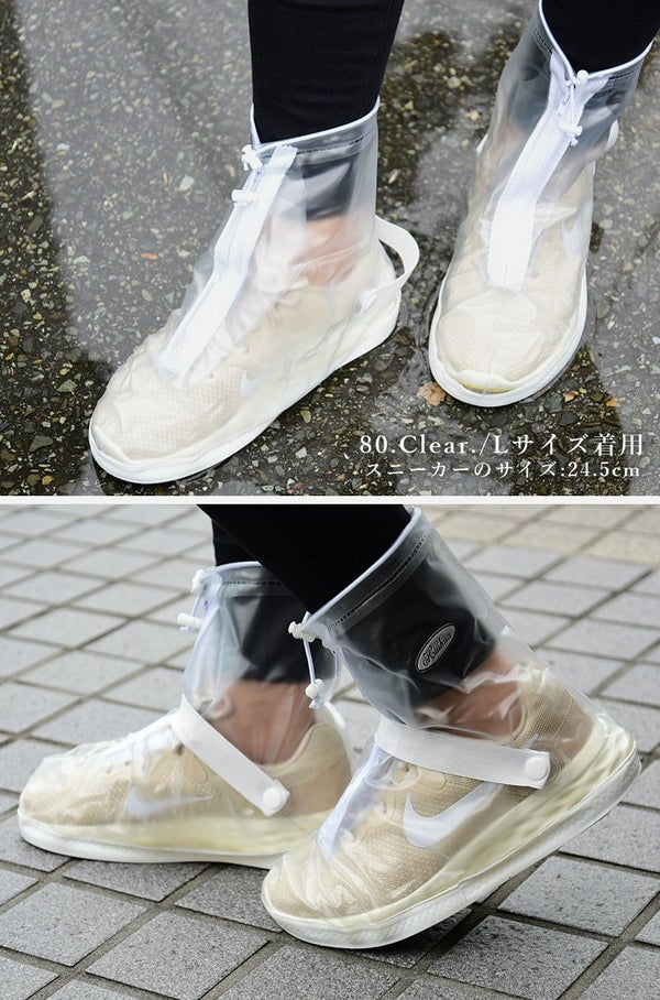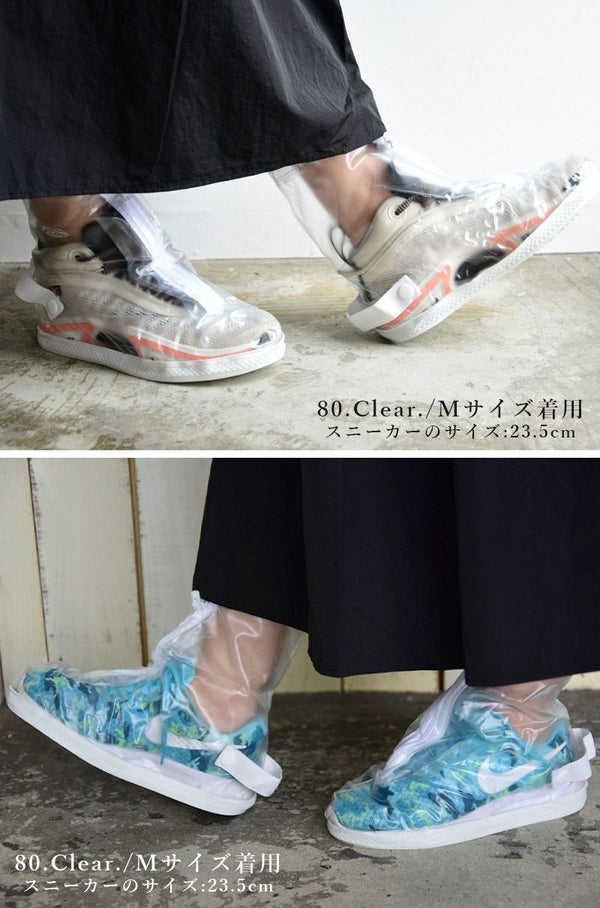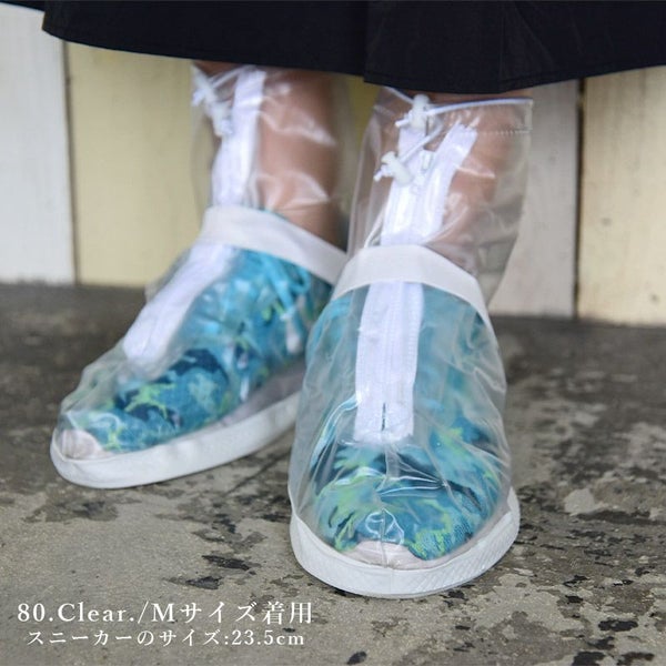 靴の上からの簡単装着で、雨水や汚れから足元を守ってくれる便利なアイテムです。フロントのZIPで簡単に脱ぎ履きが可能◎ドローコードを絞れば雨水の侵入を防ぐことができます。かかと部分には取り外しのできる平ゴムがついており、前につけるとシューズバンドとして活用でき、靴が脱げる心配がありません。カラーは透け感のあるクリアと大人っぽいブラックの使いやすい2色展開です。
