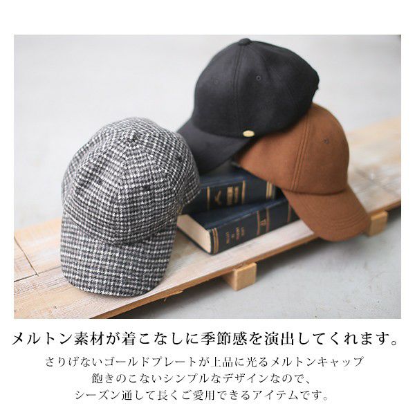 メルトン素材が着こなしに季節感を演出してくれます。さりげないゴールドプレートが上品に光るメルトンキャップ。飽きの来ないシンプルなデザインなのでシーズン通して長くご愛用できるアイテムです。シーズン通して長くご愛用頂けます。