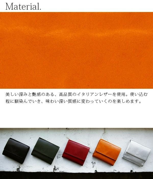 持ち運びの便利な二つ折りデザイン☆使い込むほどに味が出る、高級感のあるイタリアンレザー。