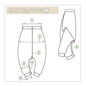 股下中央の縫い合わせから10cm下の横幅の長さを測る。