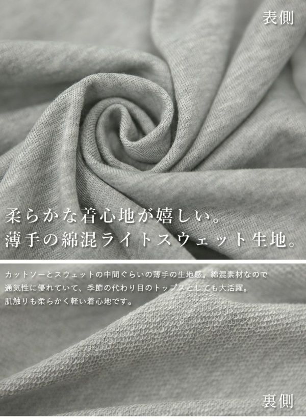 【ライトスウェット生地】ポリエステル75%、綿25%