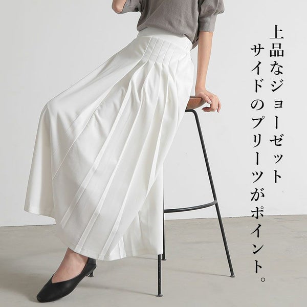 サイドプリーツで上品な印象に。シワになりにくく軽やかなジョーゼット素材の大人スカート☆