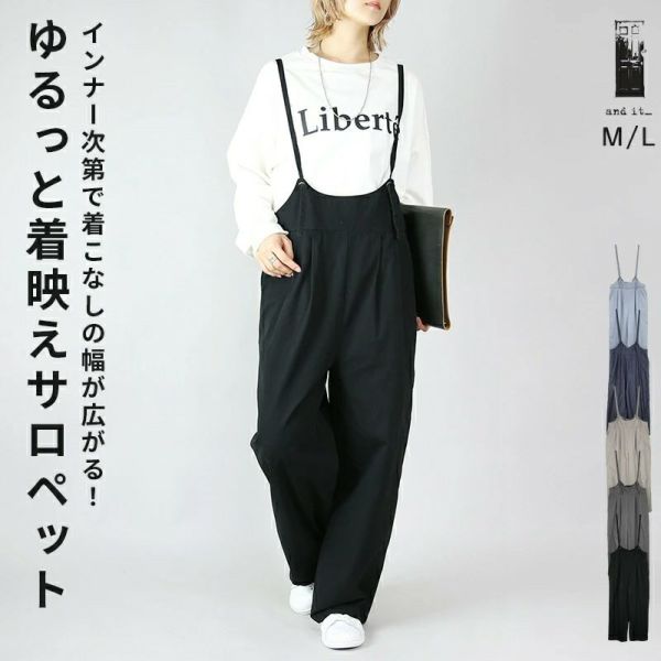 サロペット レディース ボトムス サロペ パンツ ワイド ゆったり 楽ちん カジュアル 大人可愛い お洒落 トレンド 重ね着 レイヤード 綿100% 綿 コットン ブリーチ ネイビー ベージュ チャコール ブラック 紺 黒 新作 NEW ニュー カジュアル かじゅある ナチュラル なちゅらる 女性 綺麗 綺麗目 綺麗め きれいめ キレイメ キレイめ きれい キレイ 可愛い かわいい カワイイ カッコいい かっこいい 格好良い カッコイイ 大人 オトナ おとな オトナカワイイ おとなかわいい 大人可愛い 大人女子 おとなじょし オトナジョシ お洒落 おしゃれ オシャレ トレンド 旬 とれんど 流行 こなれ感 こなれ 高見え 上質 上品 シンプル ニュアンス ラクチン らくちん 楽ちん 楽 動きやすい ゆったり ゆる ゆったりサイズ ゆるカジ ゆるい ゆるファッション 体型カバー プラスサイズ 大きいサイズ ビッグ ビック big ビックシルエット ビッグシルエット ビックサイズ ビッグサイズ オーバーサイズ オーバー フリーサイズ フリー S M L LL 2L XL 3L XXL LLL 着痩せ 着回し 華奢見せ 華奢見え ベーシック プチプラ ファッション レディースファッション レディファ カジュアルコーデ 大人コーデ オトナコーデ 大人カジュアルコーデ きれいめコーデ きれいめカジュアルコーデ オフィスカジュアルコーデ オフィスカジュアル オフィス テレワーク リモートワーク リモート オンライン飲み会 飲み会 打ち上げ ご飯会 ランチ おうち時間 お家時間 デート お出かけ フェス リゾート ビーチ 海 旅行 飛行機 パーティー パーティ 韓国ファッション 韓国コーデ 韓国風 韓国 母の日 母のひ プレゼント ギフト 贈り物 クリスマス 誕生日 春 夏 秋 冬 春夏 秋冬 andit_ and it_ andit ANDIT_ ANDIT あんどいっと アンドイット 20 30 40 50 60 20代 30代 40代 50代 60代