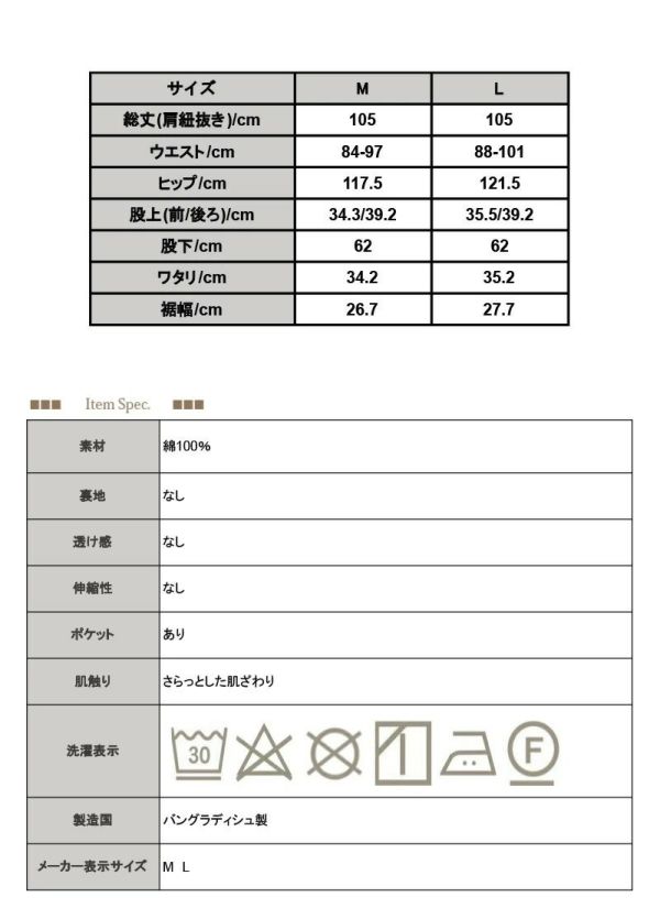 ■綿100%生地の商品は、洗濯時に多少縮む場合がございます。