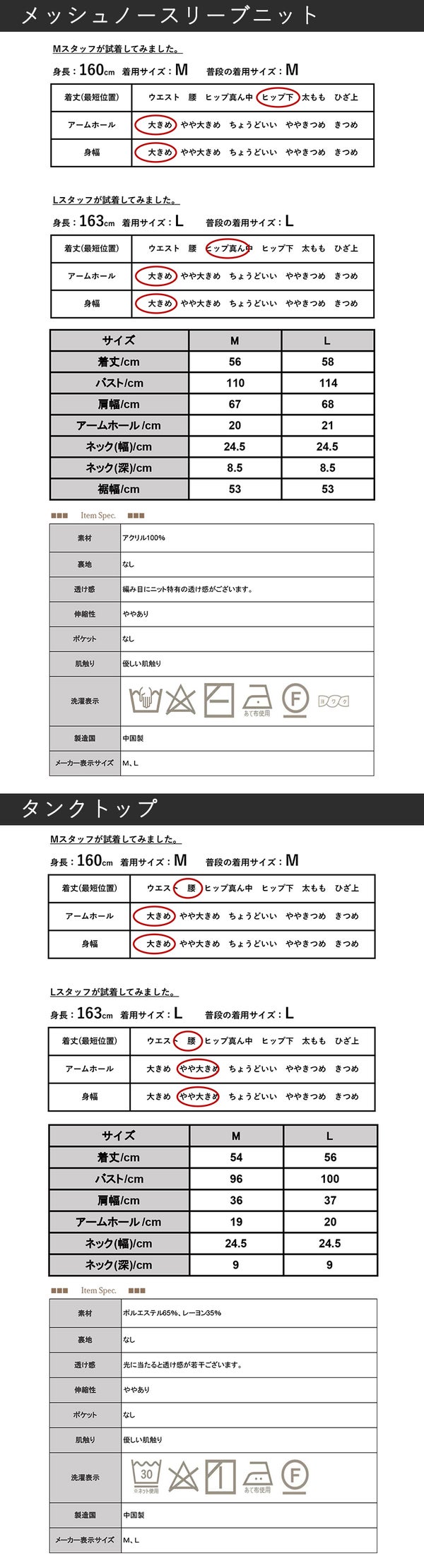 5. メッシュノースリーブニット/タンクトップ セット M L 【メール便対応可】