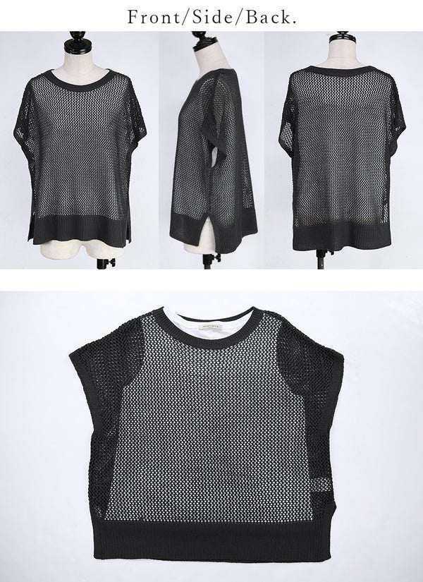 4. メッシュノースリーブニット/タンクトップ セット M L 【メール便対応可】