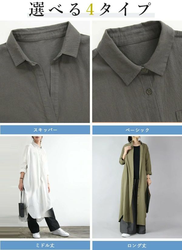 4. 選べる4type!スキッパー&ベーシック シャツワンピース M L 【メール便対応可】