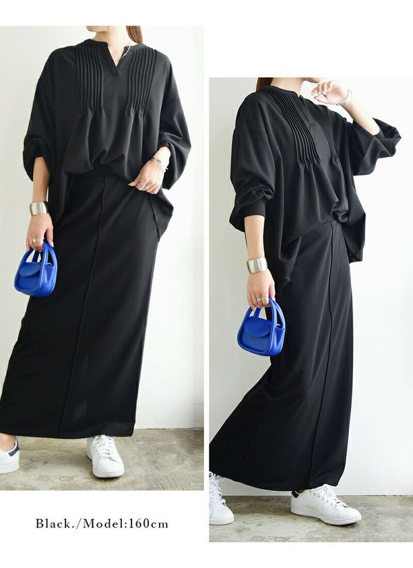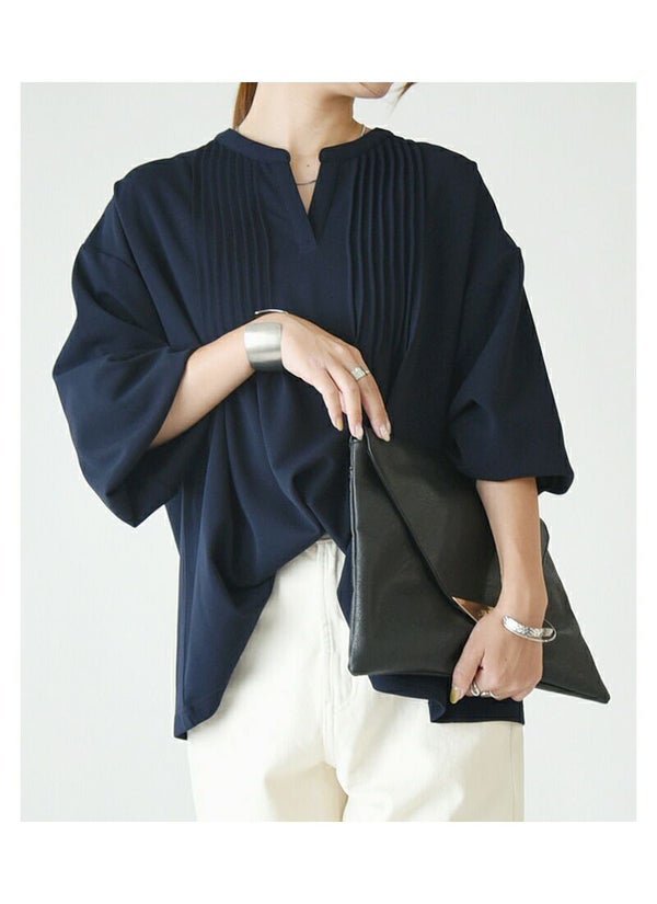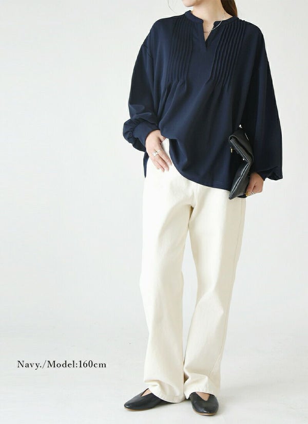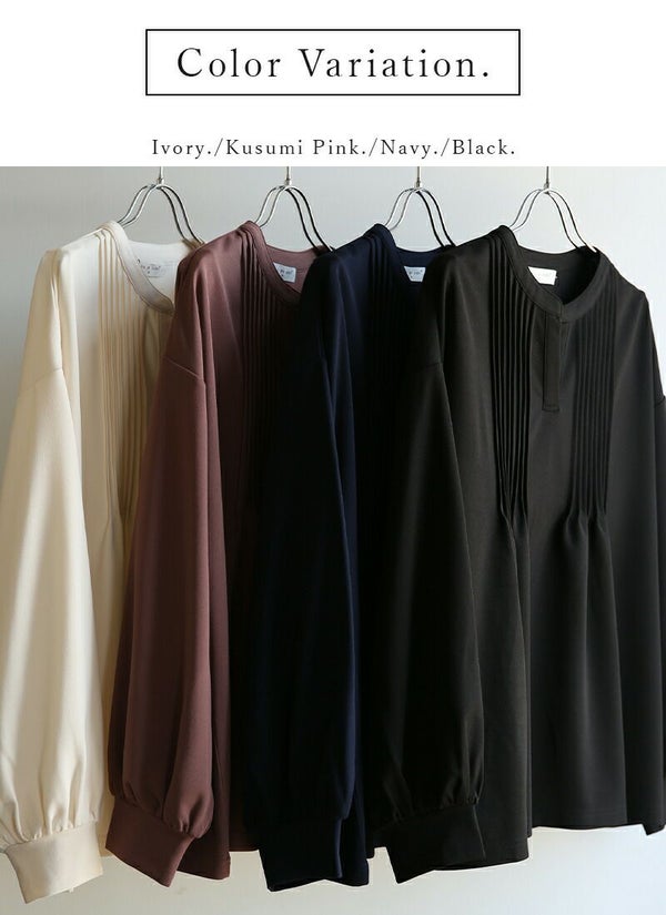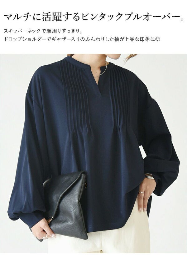 トップス レディース 梨地 ピンタック プルオーバー 長袖 ボリュームスリーブ スキッパー スキッパーネック きれいめ 綺麗め 大人可愛い 上品 ストレッチ 伸縮 シワになりにくい お手入れ楽ちん オフィス 仕事 体型カバー ゆったり 楽ちん アイボリー くすみピンク ネイビー ブラック 白 紺 黒 秋 冬 24aw AW, M L andit_ and it_ andit ANDIT_ ANDIT あんどいっと アンドイット 新作 NEW カジュアル ナチュラル きれいめ 大人可愛い 大人女子 お洒落 トレンド シンプル ニュアンス プチプラ ファッション レディースファッション 20 30 40 50 20代 30代 40代 50代