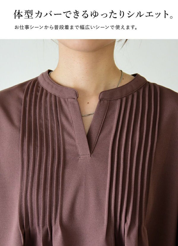 上品なピンタックデザインで女性らしい印象に。シワになりにくくお手入れも楽ちん◎
