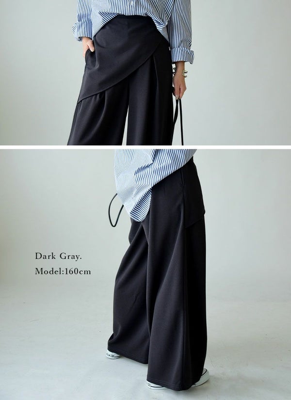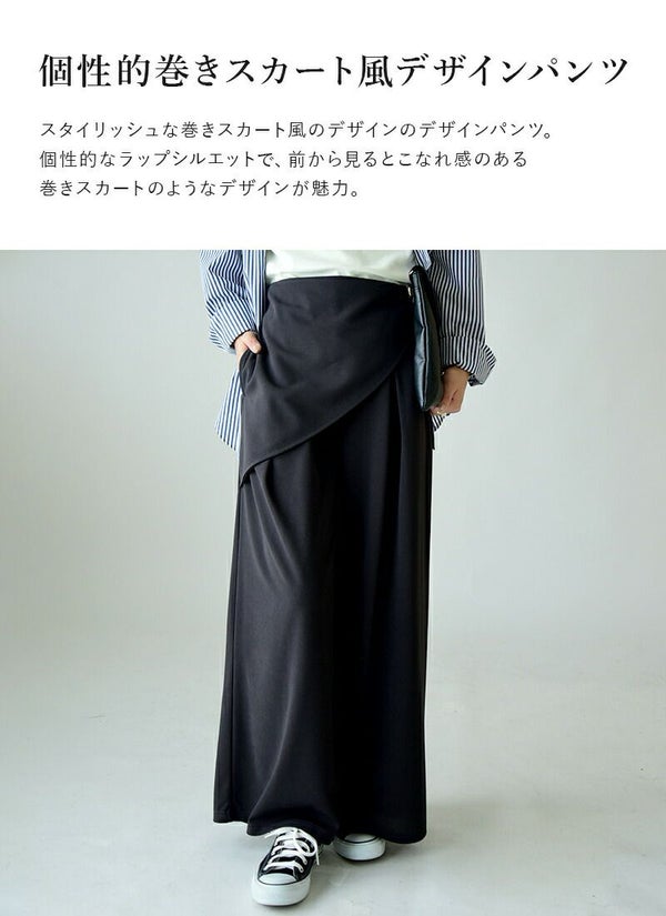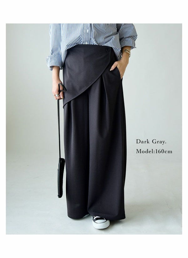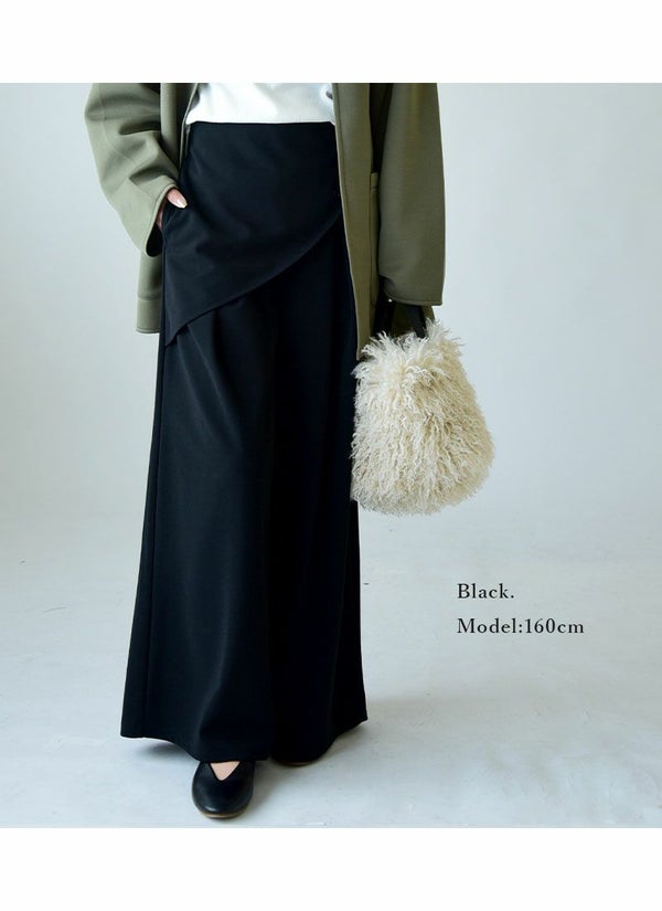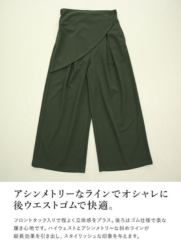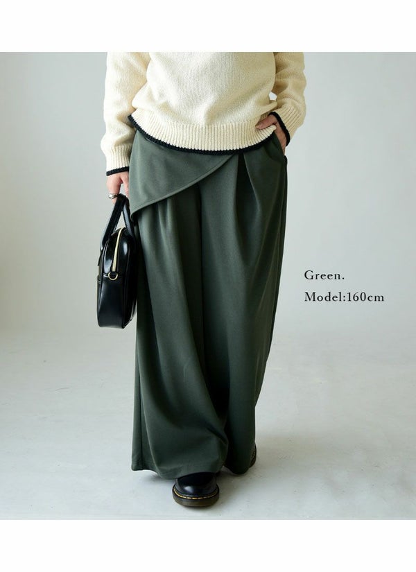 ボトムス パンツ レディース ペアスキン 梨地 凹凸 大人 ラップパンツ ラップデザイン ロングパンツ ワイド ワイドパンツ さらり 伸縮性 ストレッチ 動きやすい 楽ちん 厚手 フロントタック タックパンツ ウエストゴム ブラック ダークグレー グリーン 黒 緑 深緑 秋 冬 24aw AW, F フリー フリーサイズ andit_ and it_ andit ANDIT_ ANDIT あんどいっと アンドイット NEW カジュアル ナチュラル きれいめ 大人可愛い 大人女子 お洒落 おしゃれ トレンド シンプル ニュアンス ゆったり 楽ちん ラフ 体型カバー ぽっちゃり プチプラ ファッション レディースファッション ママ服 20 30 40 50 20代 30代 40代 50代