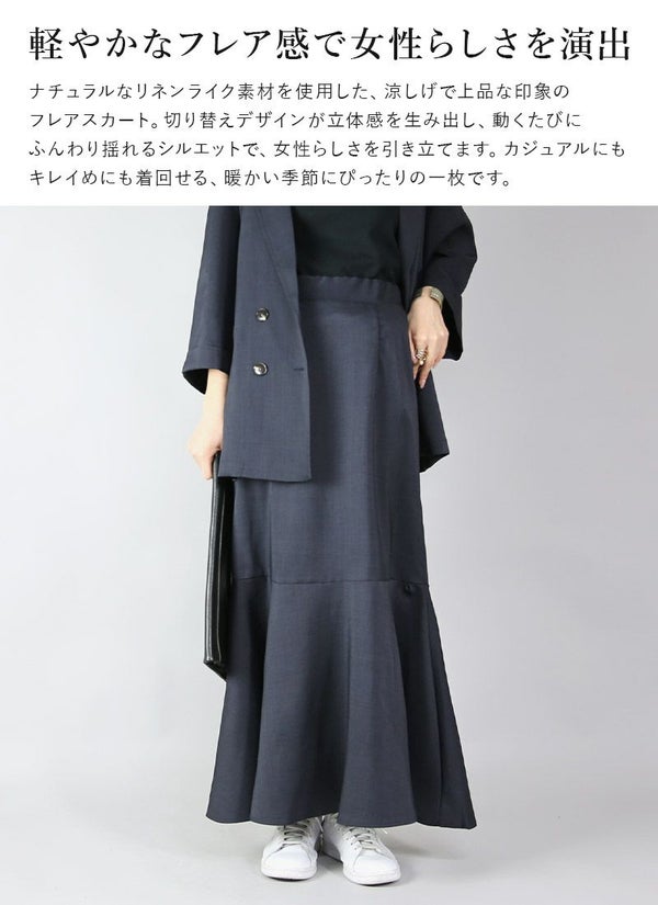 スカート レディース 杢調 リネンライク リネン風 涼し気 涼感 切り替え フレアスカート フレアシルエット ボトムス ロング丈 ロングスカート マーメイド マーメイドスカート ウエストゴム ベージュ ブラウン グレー ネイビー ブラック 茶 紺 黒 新作 NEW ニュー カジュアル かじゅある ナチュラル なちゅらる 女性 綺麗 綺麗目 綺麗め きれいめ キレイメ キレイめ きれい キレイ 可愛い かわいい カワイイ カッコいい かっこいい 格好良い カッコイイ 大人 オトナ おとな オトナカワイイ おとなかわいい 大人可愛い 大人女子 おとなじょし オトナジョシ お洒落 おしゃれ オシャレ トレンド 旬 とれんど 流行 こなれ感 こなれ 高見え 上質 上品 シンプル ニュアンス ラクチン らくちん 楽ちん 楽 動きやすい ゆったり ゆる ゆったりサイズ ゆるカジ ゆるい ゆるファッション 体型カバー プラスサイズ 大きいサイズ ビッグ ビック big ビックシルエット ビッグシルエット ビックサイズ ビッグサイズ オーバーサイズ オーバー フリーサイズ フリー S M L LL 2L XL 3L XXL LLL 着痩せ 着回し 華奢見せ 華奢見え ベーシック プチプラ ファッション レディースファッション レディファ カジュアルコーデ 大人コーデ オトナコーデ 大人カジュアルコーデ きれいめコーデ きれいめカジュアルコーデ オフィスカジュアルコーデ オフィスカジュアル オフィス テレワーク リモートワーク リモート オンライン飲み会 飲み会 打ち上げ ご飯会 ランチ おうち時間 お家時間 デート お出かけ フェス リゾート ビーチ 海 旅行 飛行機 パーティー パーティ 韓国ファッション 韓国コーデ 韓国風 韓国 母の日 母のひ プレゼント ギフト 贈り物 クリスマス 誕生日 春 夏 秋 冬 春夏 秋冬 andit_ and it_ andit ANDIT_ ANDIT あんどいっと アンドイット 20 30 40 50 60 20代 30代 40代 50代 60代