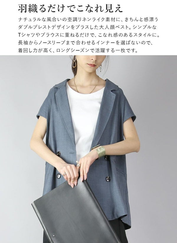 ベスト レディース 杢調 リネンライク リネン風 涼し気 涼感 ダブルブレスト トップス アウター ライトアウター 重ね着 レイヤード 華奢魅せ お尻が隠れる ヒップカバー ベージュ ブラウン グレー ネイビー 茶 紺 新作 NEW ニュー カジュアル かじゅある ナチュラル なちゅらる 女性 綺麗 綺麗目 綺麗め きれいめ キレイメ キレイめ きれい キレイ 可愛い かわいい カワイイ カッコいい かっこいい 格好良い カッコイイ 大人 オトナ おとな オトナカワイイ おとなかわいい 大人可愛い 大人女子 おとなじょし オトナジョシ お洒落 おしゃれ オシャレ トレンド 旬 とれんど 流行 こなれ感 こなれ 高見え 上質 上品 シンプル ニュアンス ラクチン らくちん 楽ちん 楽 動きやすい ゆったり ゆる ゆったりサイズ ゆるカジ ゆるい ゆるファッション 体型カバー プラスサイズ 大きいサイズ ビッグ ビック big ビックシルエット ビッグシルエット ビックサイズ ビッグサイズ オーバーサイズ オーバー フリーサイズ フリー S M L LL 2L XL 3L XXL LLL 着痩せ 着回し 華奢見せ 華奢見え ベーシック プチプラ ファッション レディースファッション レディファ カジュアルコーデ 大人コーデ オトナコーデ 大人カジュアルコーデ きれいめコーデ きれいめカジュアルコーデ オフィスカジュアルコーデ オフィスカジュアル オフィス テレワーク リモートワーク リモート オンライン飲み会 飲み会 打ち上げ ご飯会 ランチ おうち時間 お家時間 デート お出かけ フェス リゾート ビーチ 海 旅行 飛行機 パーティー パーティ 韓国ファッション 韓国コーデ 韓国風 韓国 母の日 母のひ プレゼント ギフト 贈り物 クリスマス 誕生日 春 夏 秋 冬 春夏 秋冬 andit_ and it_ andit ANDIT_ ANDIT あんどいっと アンドイット 20 30 40 50 60 20代 30代 40代 50代 60代