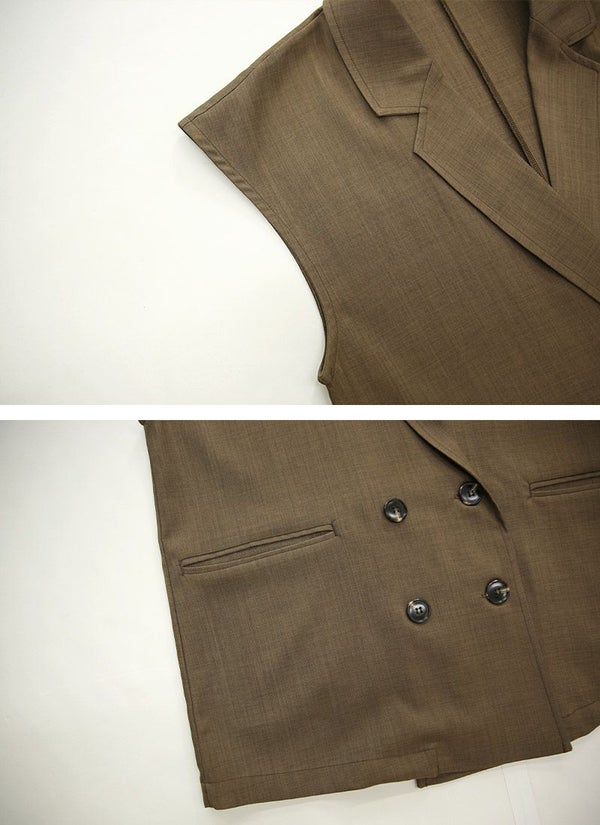 杢調リネンライクダブルブレストベスト M L 【メール便対応可】