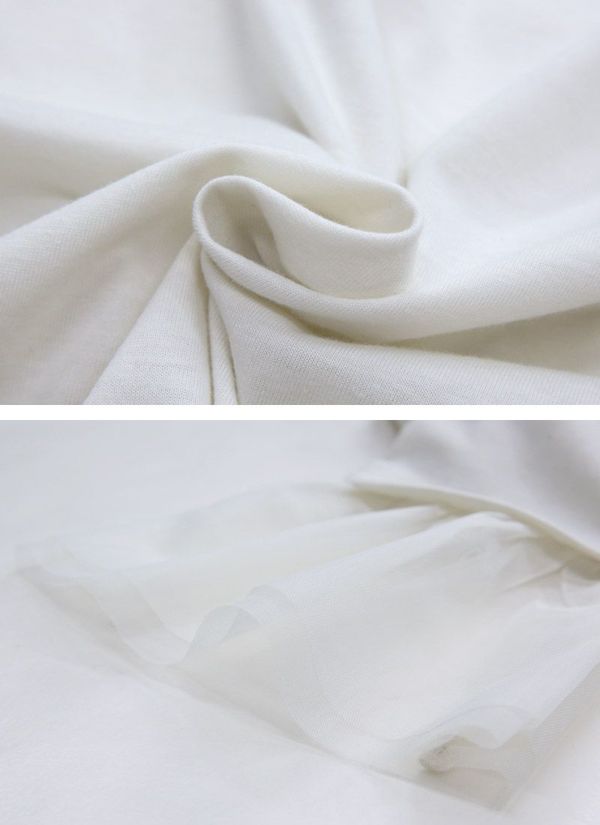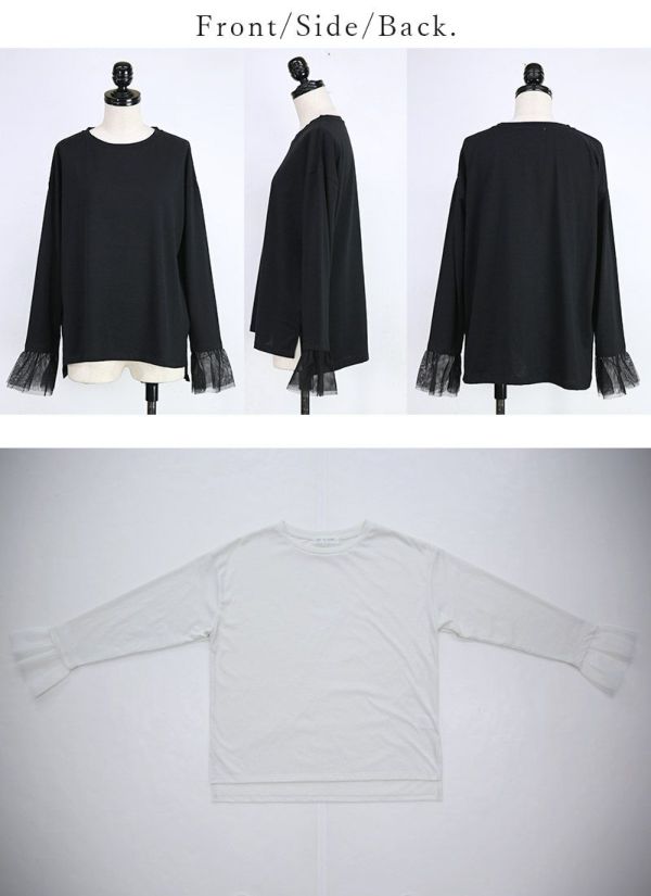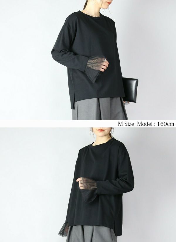 袖チュール長袖tシャツ M L 【メール便対応可】