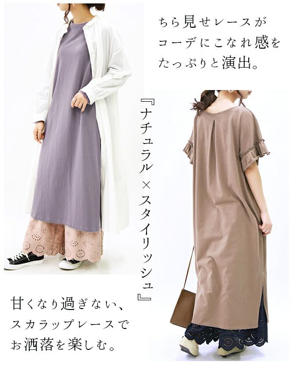 背の高い私がウエストで穿いて、くるぶしが見えるくらいのロング丈でした。裾のレース部分が涼しげな抜け感POINTに◎ウエストには伸縮性のあるゴムを使っているので、ゆったり穿けました!脚のラインにフィットしないワイドシルエットがGOOD♪