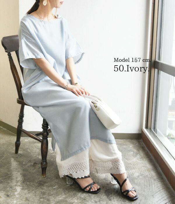 【50アイボリー、72ライトピンク、95スモーキーグレー】レーヨン55%、綿30%、麻15%、(レース 綿100%)