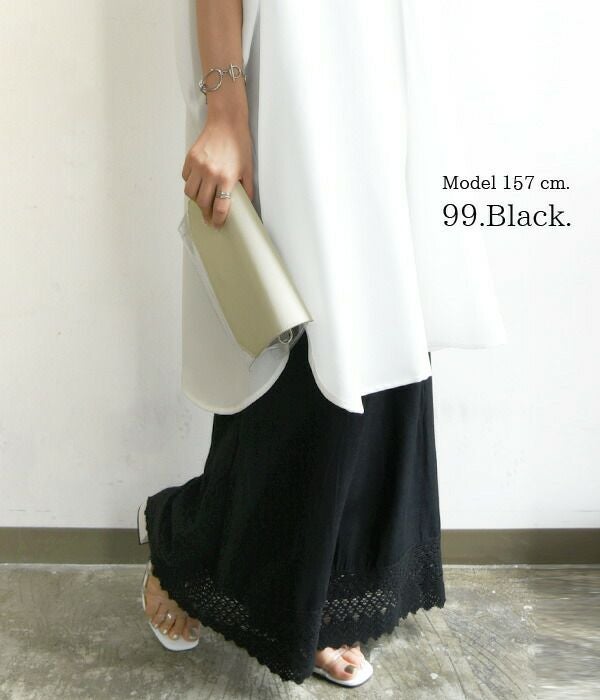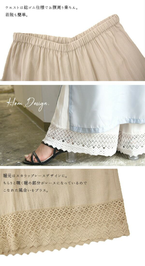 裾レースコットンリネンペチパンツ M-L 【メール便対応可】
