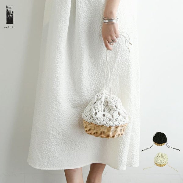 バッグ レディース 柳 紐編み 巾着 ミニバッグ BAG 春夏 異素材 デイリー 浴衣 涼感 ミニ コンパクト カゴバッグ アイボリー ブラック 白 黒 andit_ and it_ andit ANDIT_ ANDIT あんどいっと アンドイット SS 新作 NEW カジュアル ナチュラル きれいめ 大人可愛い 大人女子 お洒落 トレンド シンプル ニュアンス ゆったり 楽ちん ラフ 体型カバー ぽっちゃり プチプラ ファッション レディースファッション ママ服 20 30 40 50 20代 30代 40代 50代