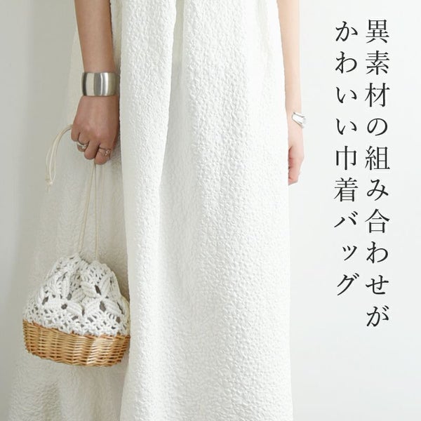 異素材の組み合わせが可愛い巾着バッグが登場!柳カゴに綿紐を組み合わせて編み、ナチュラルで大人可愛いデザインに。小さくてコロンとした形が可愛いく、持つだけで季節感をプラスしてくれます。普段使いはもちろん、浴衣とのスタイリングにもおすすめです♪